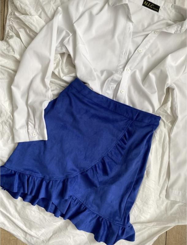 Очень красивая юбка насыщенного синего цвета Стан идеален, идет на запах Ткань типа замш, очень мягенькая и приятная к телу Размер С-М Без дефектов