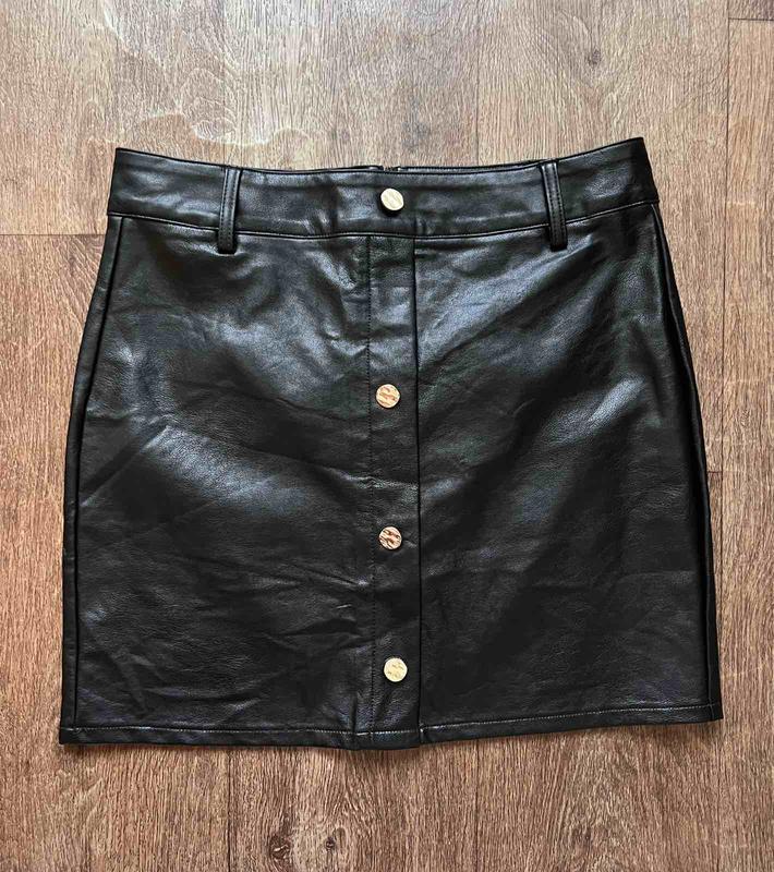 Юбка из кожзаменителя Quiz, размер M-L, длина 45 см, полуобхват талии по поясу 42 см, застегивается на молнию, можно носить под пояс