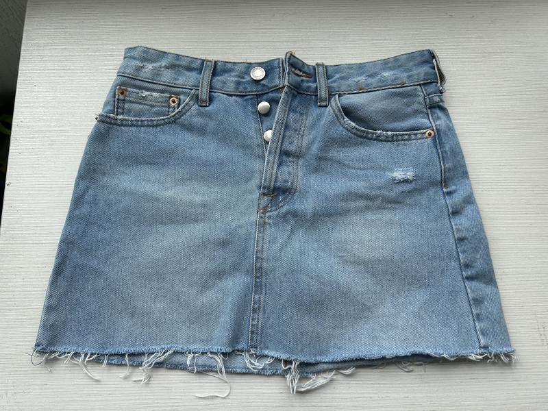 Коротенька джинсова спідничка від Bershka, якісний щільний джинс, 100% бавовна, в ідеальному стані. Півобхват талії - 35 см, півобхват стегон -45см, довжина від талії - 35 см