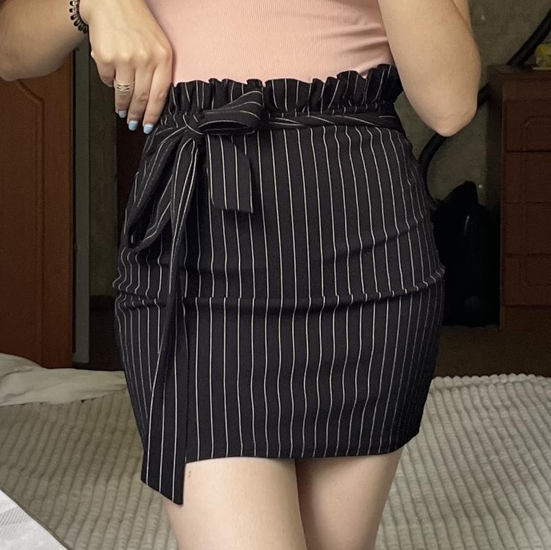 Юбка в идеальном состоянии! Размер С Черного цвета в белую полоску Одет на параметры: • рост - 162 см • талия - 68 см • бедра - 93 см Тянется