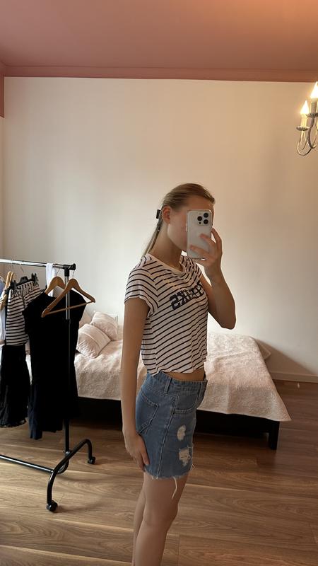 Джинсовая юбка Футболка в подарок Замеры: полуобх. косточки-37 Длина-33 Цена-110 грн