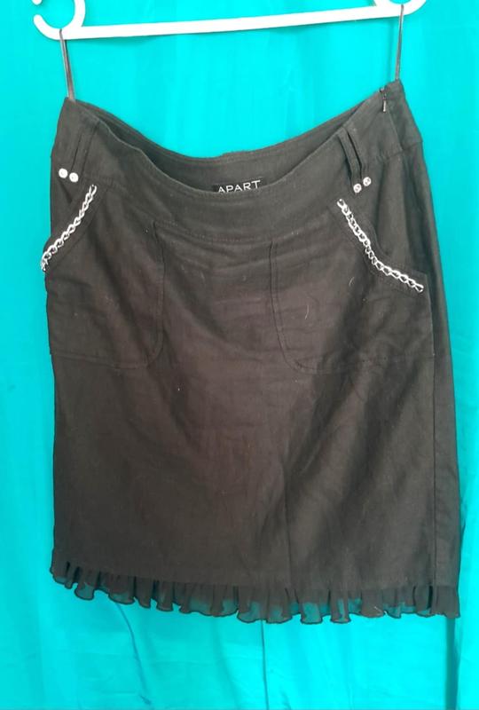 Чорна юбка спідниця Apart харизматична. Стильна, помітна, модна. заміри об'єму талії по спідниці мах. ПоО талії 43см. не тягнеться, хочатканина не груба, як льон цупка, але і не надтонка, це не рядюжка. Стегна 53см. напівоб'єм повне коло приблизно 102-106см. Довжина 526см. по спинці. Зазначу, що "докуда" буде Вам довжина, то залежить від довжини Ваших ніг/стегон. Тобто від особливостей фігури моделі. Ви можете одягнути на себе свій одяг і замірити на собі "докуда" Вам 56см. від талії до подолу. Цю спідницю жодного разу не одягали. Може бути присутня шерсть мопса від неї нікуди не дітям, хоча перед відправною почищу) Але я продаю її з других рук, як б/у, тому Ви маєте можливість придбати її по вказаний дійсно актуальний ціні, але в мене немає примірки, юбка по ним не катається. Після кількох таких покатушек і примірянь вона вже не буде відповідати заявленому стану. Люди є різні. Ви же не хочете, щоб перед вами її одягали сто разів? Ось примірки і нема. Пересилаю тільки після повною оплати на картку і повернення та обміну нема А чи не так Ви купуєте нове на сайтах в інтернет магазинах те, що бачити на відредагованій картинці? Всі мої фото зроблені наживо. Звіряйте заміри із своїм одягом і власною фігурою і зважуйтесь на придбання. Зверніть увагу на мої шубки. Може щось підійде до плаття. Дві свої речі разом я віддам з умовою, що друга річ буде за 50% (та, що на момент продажу буде з меншою ціною і якщо вона буде в наявності. Увага! Наложки немає. Пропануйте власну ціну в оплачуйте у той самий день, за умови мого погодження. Повернення немає. Резерву немає. Торг є . Оплата повна попередня.