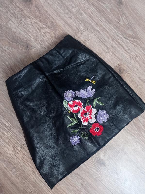 юбка, черная, с вышивкой, на молнии