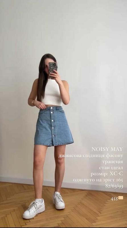 Джинсова спідниця фасону трапеція Розмір Xs-S Напівобхват талії - 33 см Довжина - 43 см