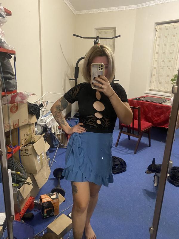 Очень красивый синий цвет ближе к бирюзовому , приятная ткань как жатка Размер С Состояние идеальное Замеры по требованию