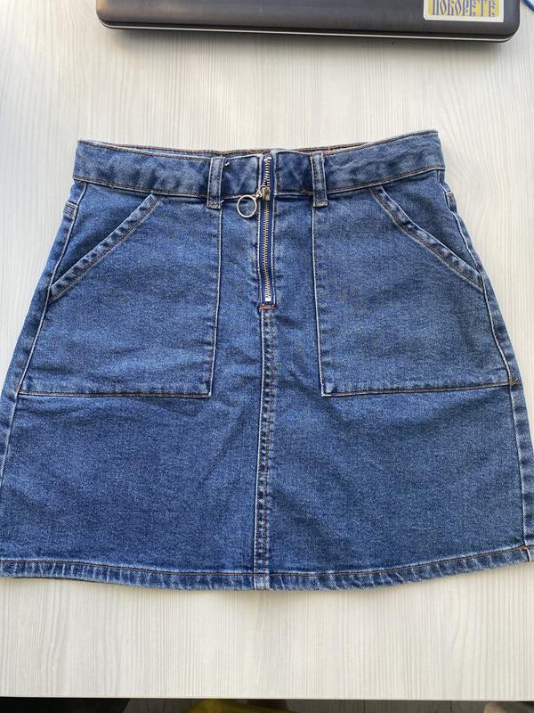 Продам джинсовую юбку. Размер С, возможно небольшая М. Надевала несколько раз, следов носки нет. Только чуточку стерлась бирка (последняя фото). Продаю потому, что похудела и она стала большой. Замеры: Полу обхват талии 33 Полу обхват бедер 43 Длина юбки 37