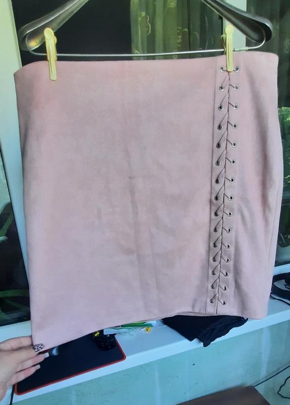 Замшева спідниця на підкладці у світло рожевому кольорі, камера не передає колір... Купила на шафі так і не одягла, замала стала. Дуже гарна і приємна на дотик. Розмір 52-56