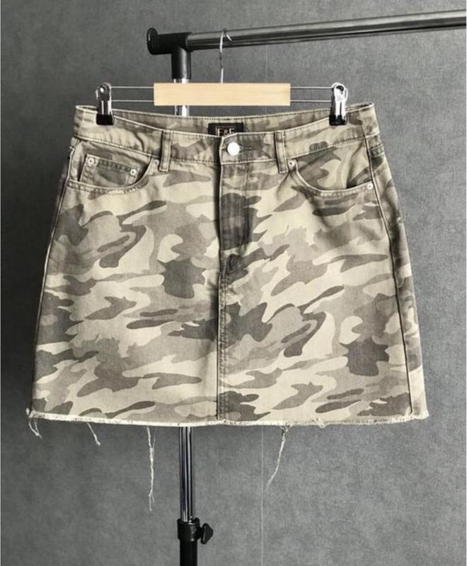 Стильна мініспідниця з камуфляжним принтом. Щільний денім, добре тримає форму. Актуальна модель, легко поєднується з базовими футболками, світшотами та сорочками. Деталі: • Бренд: F&F • Колір: камуфляж • Стан: ідеальний • Матеріал: 100% бавовна • Посадка: на талії • Застібка: блискавка + ґудзик Заміри: • Пояс: 41 см • Стегна: 52 см • Довжина: 40,5 см 📦 Швидка відправка 📏 Орієнтуйтесь на заміри