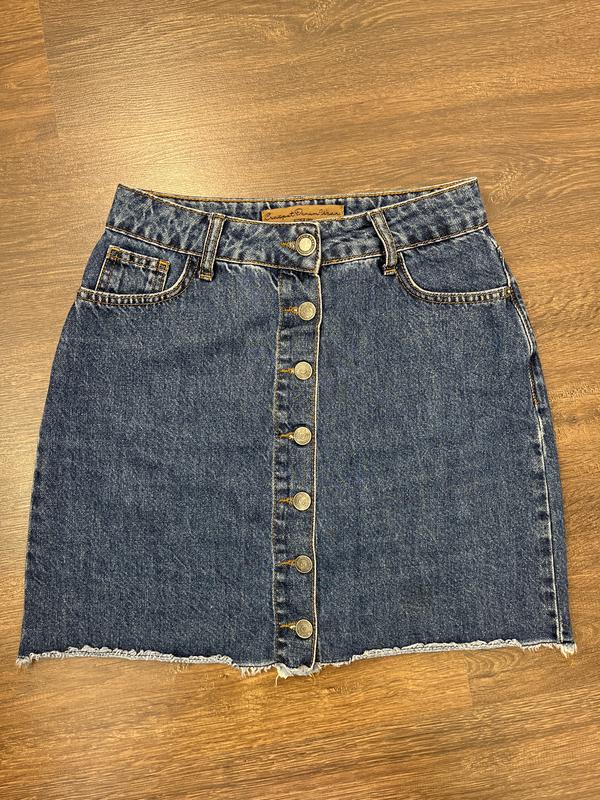 Юбка джинсовая на пуговицах, ширина в поясе 33 см, длина 42 см