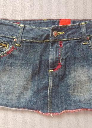 Короткая юбочка с низкой посадкой. Интересные детали красного цвета. Размер S