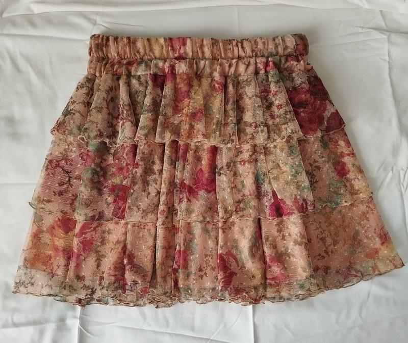 Романтичная юбочка с тремя ярусами рюш, на широкой резинке. Из изящного кружева, на подкладке. Производитель - Италия. В ней вы будете легко кружить и покорять этот мир! полуобхват талии - 29 см (на резинке, хорошо тянется) длина - 36 см (в том числе высота пояса - 6 см)