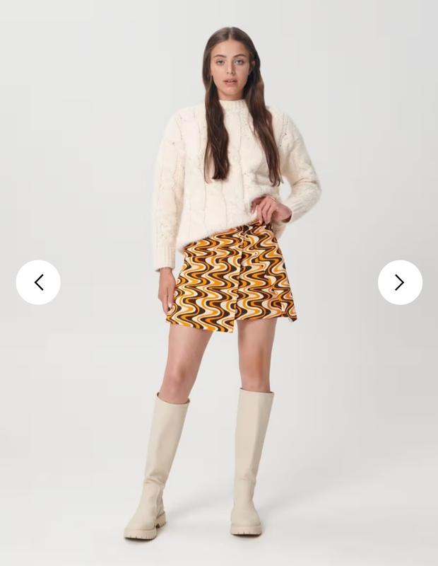 размир: xs тянется к M красивая мини ложится по фигуре, завитая талия. сзади скрытая молния