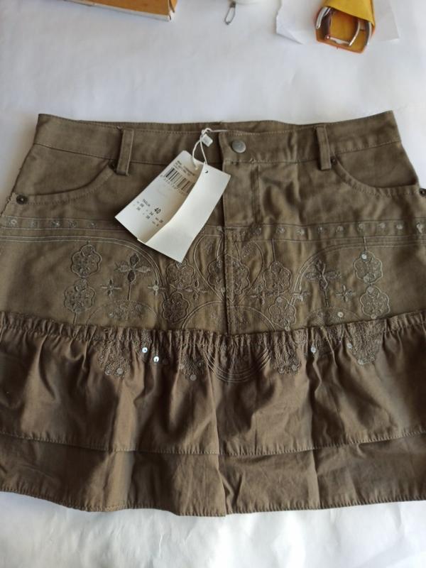 застежка - молния и кнопка ширина в поясе 77 см длина 37 есть карманы спереди