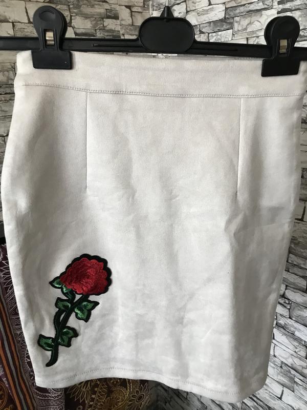 Юбка женская размер 25-29 бежевый вышивка цветок