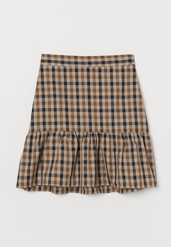 Короткая юбка с высокой посадкой, которая приталена сверху со скрытой молнией с одной стороны и собранным швом на подоле для дополнительной ширины. Без подкладки.