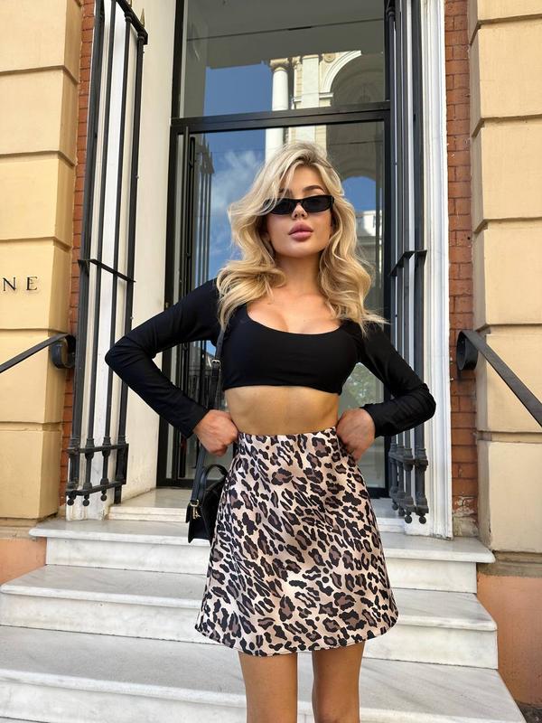 Юбка 🔥 Мод: 1457-042 ▪️Размер: s, m, l ▪️Ткань: Сатин ▪️Цвет: черный, лео Производство Турция 🇹🇷 Сбоку на молнии и на резинке