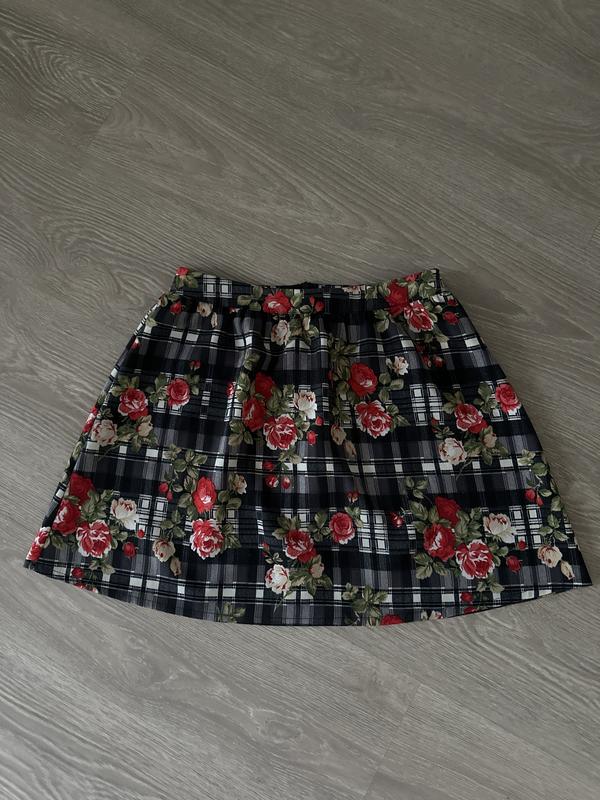 Прекрасная яркая юбочка в цветочный принт, на бирке 10 размер, может подойти и на 8, смотрите по замерам. Сзади замочек скрыт. Пот 33 Длина 41,5 Поб 60+