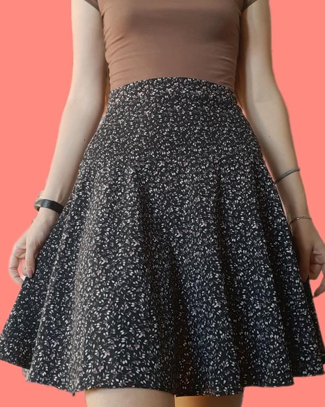 Чорна спідничка із квітковим принтом, розмір S. Висока талія.