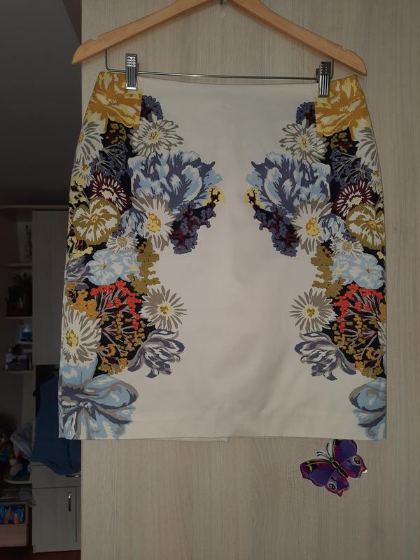 юбка атласная HM размер М, в стиле Ted Baker. На бедра до 103 см сядет идеально. Талия полуобхват 39 см Длина 52 см Бедра полуобхват 50 см На подкладке, сзади небольшой разрез, застежка молния. Идеально садится по фигуре. Состояние новой вещи, без нюансов.