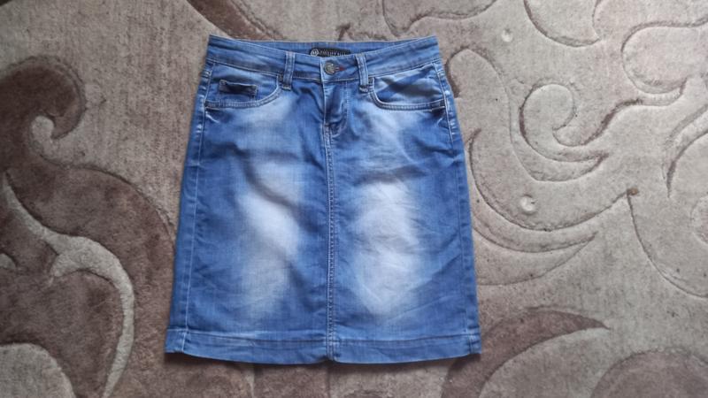 Узкая, по фигуре, юбка из стрейчевой джинсовой ткани, хорошо тянется. Подойдет на следующие параметры: пояс 80-86 см, бедра 94-108 см, длина 52 см.