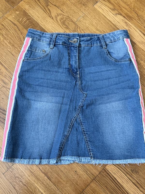 Юбка в идеальном состоянии, без дефектов и следов носки. Длина 41см. Ширина талии 34см. Ширина бедра 41см. Материал джинс+стрейч Подходит на размер Xs i S.