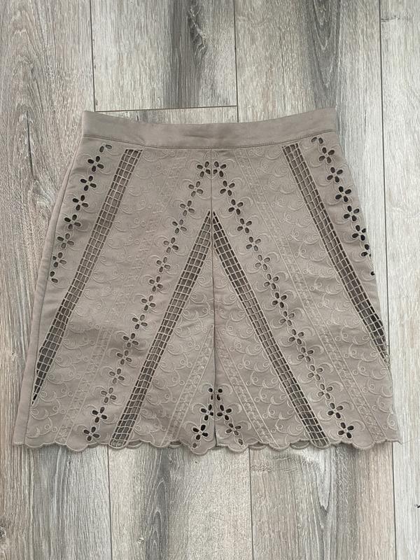 Коротка спідниця приємного бежевого кольору з вишивкою