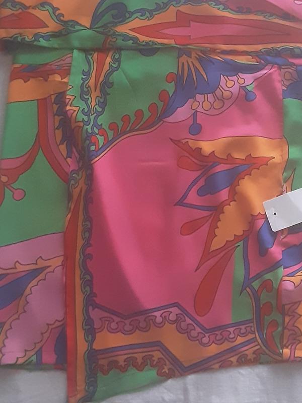 Новая с этикеткой юбка на запах мини Green Foxy Jaspre Mu 42-44 Ткань полиестер напоминает шелк.Ткань красочная,ярка. Юбка удобна носить на пляж Длина 48см Полу обхват талии 51см