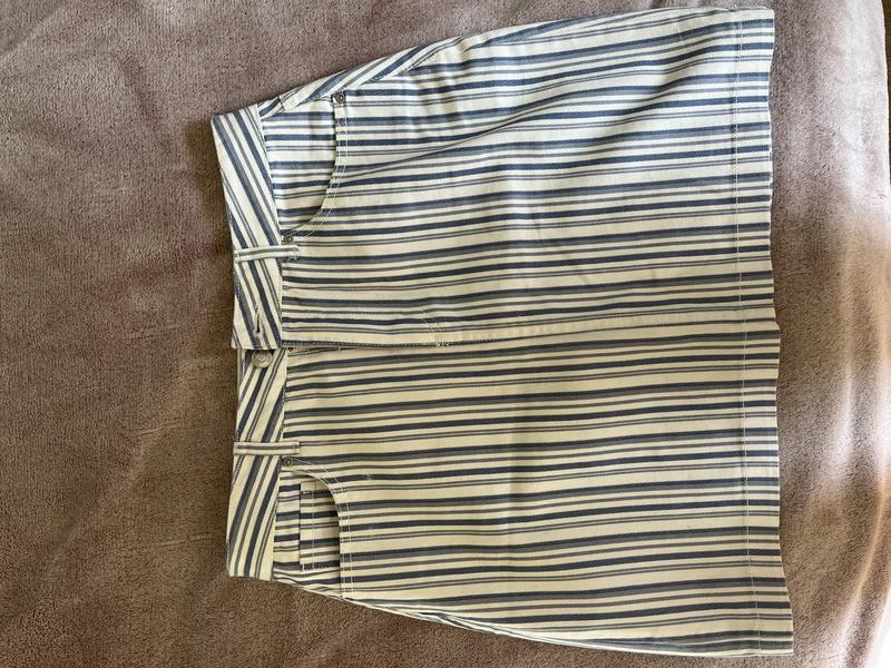 Юбка в полоску белая и деним. Марка Colin’s. Носила буквально несколько раз. Тканина: бавовна, але не мнеться. Не слишком коротка. Размер 36. Я 476 36/38 мне сидя было удобно. Фото на сайте можно глянуть, прикрепила, как сидит на девушке. Также цену очень понижу, но состояние как новое.