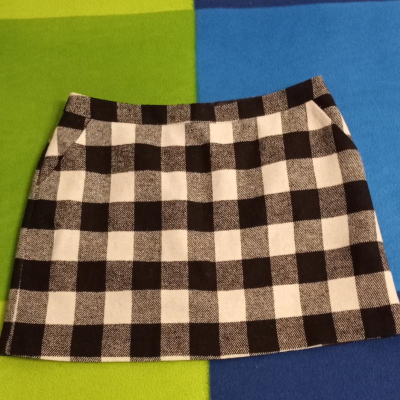 юбка теплая в клетку (черно-белая). мини. длина -41, пояс -43, бедра -53.
