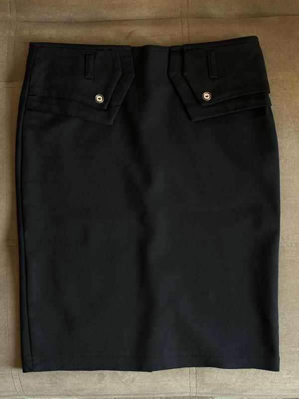 Черная юбка карандаш. Размер 36. Ткань достаточно хорошо тянется. Сзади есть молния и небольшой разрез по серединной линии.
