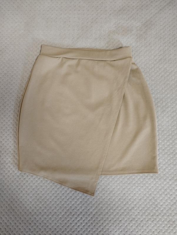 Бренд: Boohoo; Размер:UK 12/M; Цвет: светло коричневый; Состав: 95% полиэстер, 5% эластан; Длина юбки: 45 см; ПОТ: 33 см; ПОБ: 48 см. Номер: 2321824.