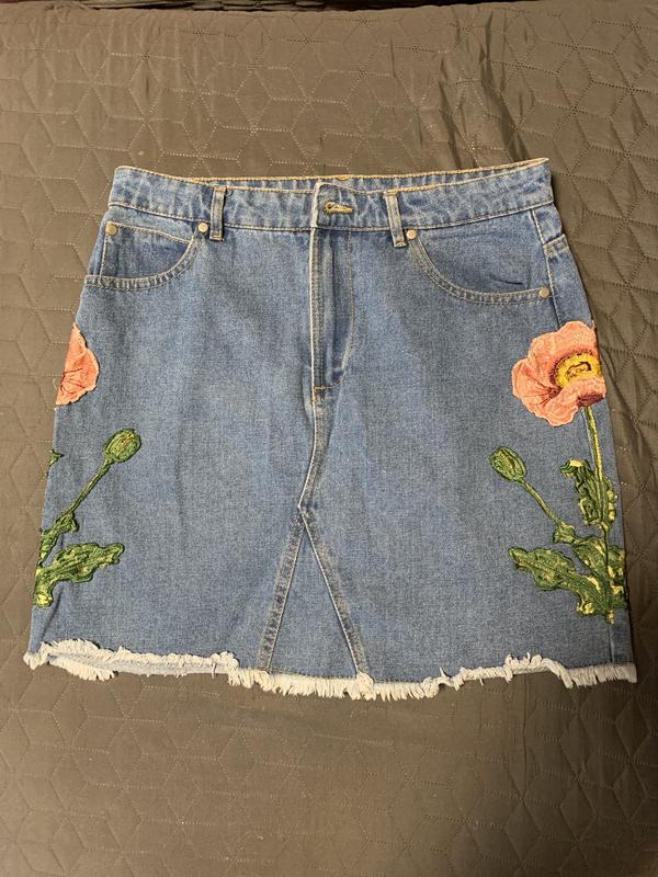 Джинсовая юбка Asos с вышивкой Размер UK 12 EU 40. Замеры: ПОТ 41 ПОС 53 Длина 47 см