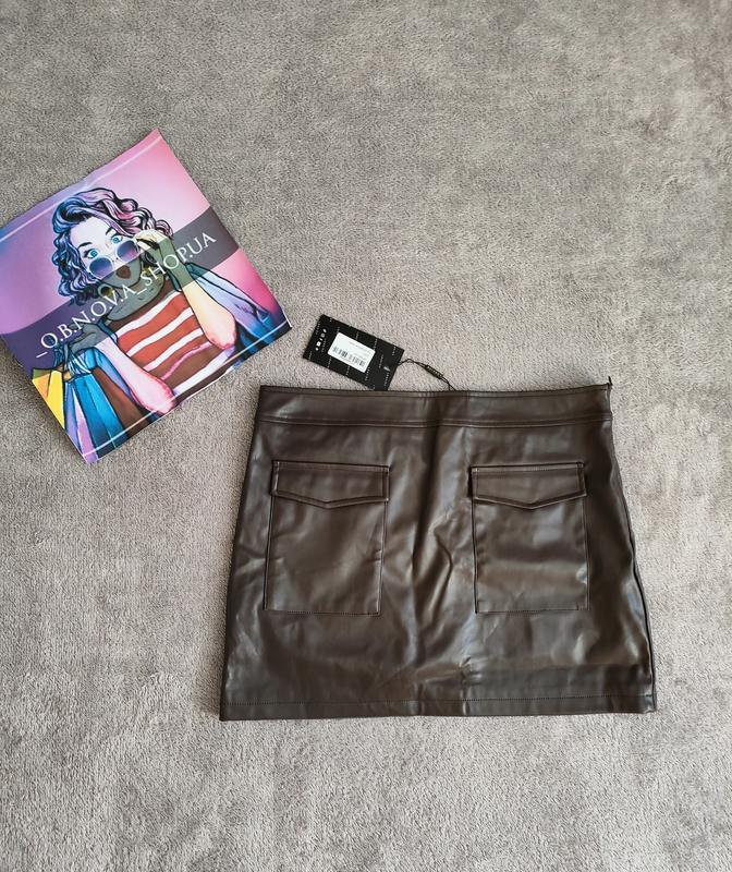 Юбка из экокожи, цвета черный шоколад, имеет карманы 🌸 Побт 42см 🌸 Длина 39см Цена 600 грн