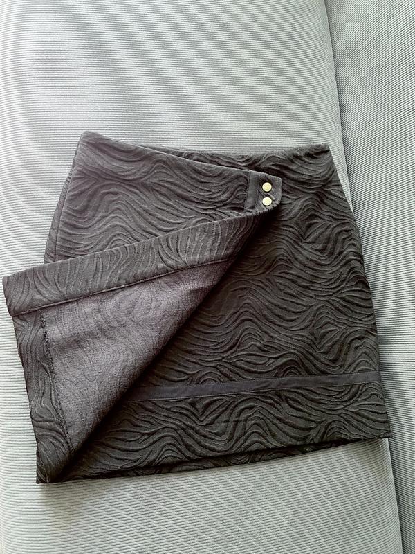 Черная мини юбка Naf Naf из плотного фактурного материала, застежка сбоку, в красивом состоянии. Размер 34, длина 40 см. Материал почти не тянется.