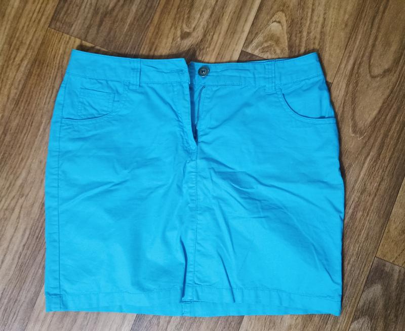 юбка голубая яркая.состояние как новая.одевала один раз..полуобьем талии-44см.длина- 43см. с карманами.два спереди.два сзади.