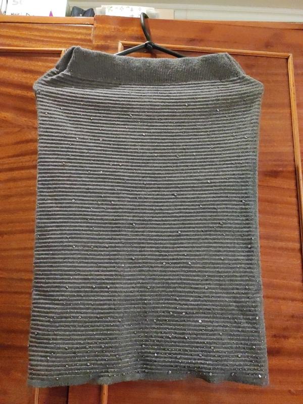 Юбка-резинка. Талия 30 см(+резинка), длина 57 см. Впереди вся в стразах