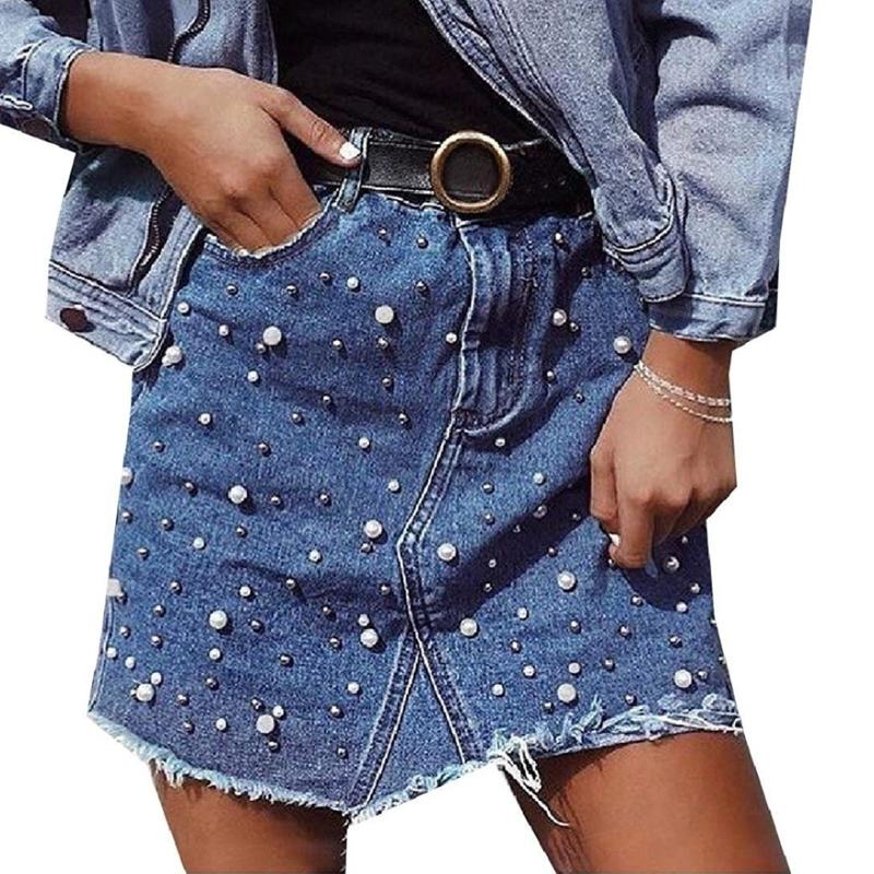 Стильная юбка из джинса, декорированная жемчугом, которые хорошо закреплены металлическими закрепками (не отпала ни одна)). Размер s