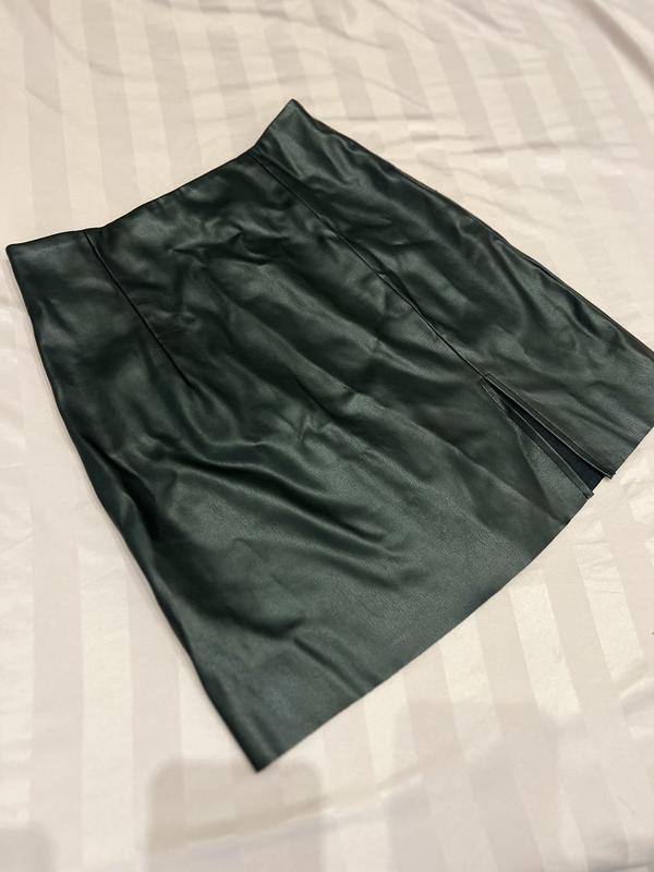 нова, еко -шкіра спідниця. З розрізом. На блискавці, збоку.