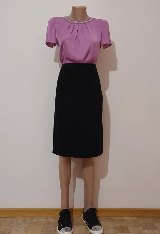 Классическая юбка карандаш 48-50 размера с завышенной линией талии. По длине 60 см, обхват талии 82, обхват бедер 100, застегивается сзади на замок 19 см, распорка 20, высота пояса 8 см. Сзади на правой стороне в области конца замка имеется небольшая вышивка