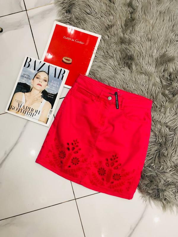 Розовая джинсовая юбка деним с перфорацией next хс/с Полуобхват талии 36 Полуобхват бедер 46 Длина по боковому шву 44 Хс/с Арт. #l20