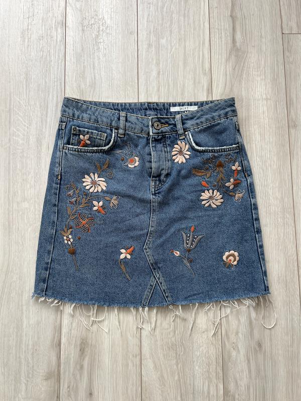 Джинсова спідничка з вишивкою Розмір: 34 xs-s Стан ідеальний