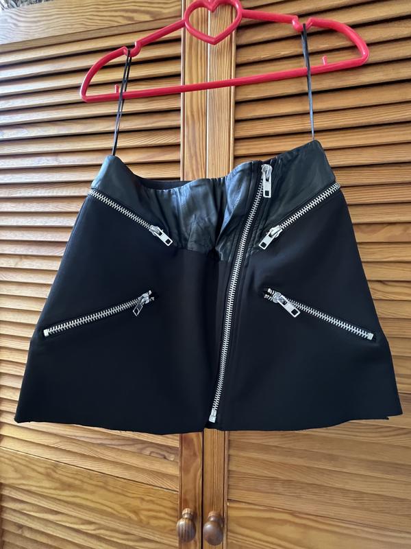 Нова спідниця. Оздоблена блискавками. Повністю розтікається з переду Матеріал кожзам цілий. Але може полізти. Тому знижка максимальна Нова не носилася та ставлю як «вживане» і знижую ціну