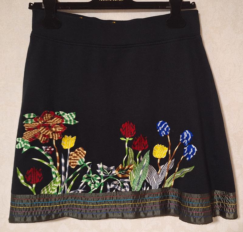 Черный цвет в сочетании с невероятным цветочным принтом подчеркнет стиль и элегантность, дополнит любой трендовый образ. "Солнцеклеш" силуэт, который добавляет женственности и подчеркивает талию. Ткань трикотажная практичная и удобная в уходе. Бренд Desigual – качество и стиль (Испания). Склад: 85% бавовна; 10% вискоза; 5% еластан. Цвет: черный с цветным вышитым цветочным принтом. Размер: S Замеры ОТ 78 см Длина изделия 46 см