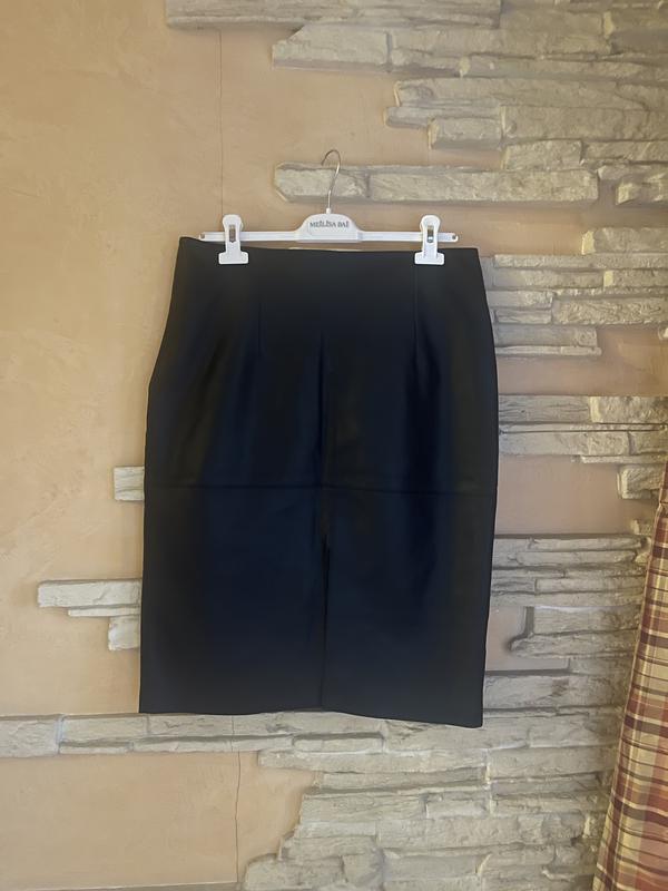 Черная, из искусственной кожи юбка Twin Set, с разрезом спереди и молнией сзади. Длина 61, ОТ42, ОБ 48. В идеальном состоянии, без нюансов и дефектов.