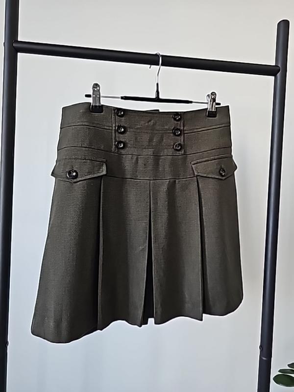 юбка со складками актуального цвета хаки, идеальное состояние размер 38, (10) объем талии 80см длина 44см 49% полиэстер 49% вискоза 2% еластан