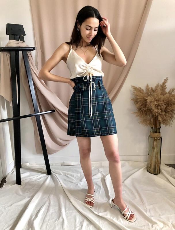 Базовая юбка в клетку, верх на резинке, подойдет на размер 42-46, красиво тянется, без дефектов, ткань трикотаж, по бокам карманы