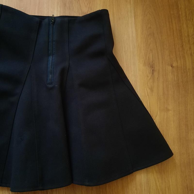 Красивая черная юбочка, снизу свободная, в талии облегающая Защелкивается на замочек Очень плотная ткань Недостаток на последнем фото