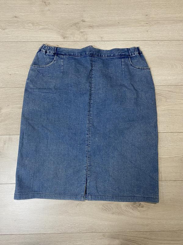 Джинсовая юбка Размер и состав ткани есть на фото ➡️ Состояние очень хорошее, маленький нюанс на последнем фото Длина 62 Пояс 44/51, есть боковые резинки Поб 57/60 Спереди маленький разрез - 14 см длина