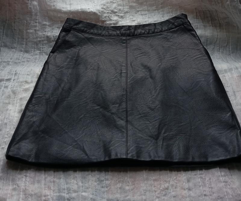 Черная юбка кожзама.p.M. eur 38.талия38.бедра 44.низ50.высота 39