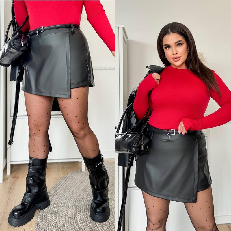 Стильная юбка-шорты с запахом. Сзади застежка молния. Идеальный выбор для создания модных и женственных образов. Мод. 358 Цена 💳720 грн Размеры : 48-50,52-54,56-58 Ткань: эко кожа на трикотаже высокого качества ✅инспир ✨✨✨✨✨✨✨✨✨✨✨